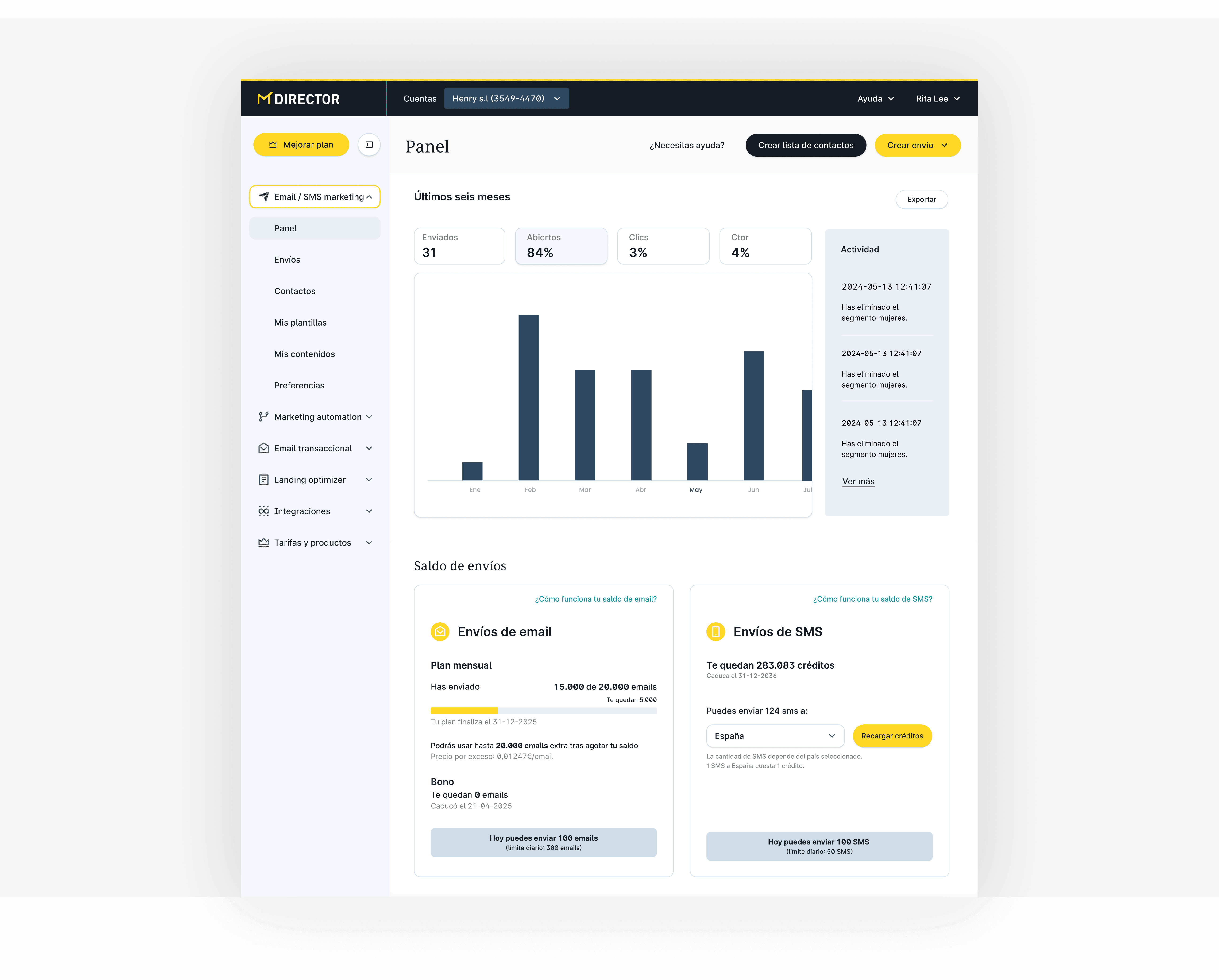 Rediseño end-to-end de la plataforma SaaS de email marketing de MDirector, utilizada por empresas y profesionales para crear y gestionar campañas digitales. Durante 9 meses, lideré una optimización UX integral para mejorar cómo los usuarios entienden, contratan y gestionan los servicios — haciendo la experiencia más clara, autónoma y eficiente.
